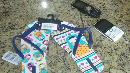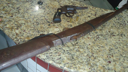 Com eles foram apreendidas duas armas: um revólver calibre 38, municiado com dois cartuchos intactos, e uma espingarda artesanal tipo "bate-bucha". Além do celular da vítima, também foi encontrado com os assaltantes outro celular, da marca Samsung, e um par de sandálias novas da marca Ipanema.