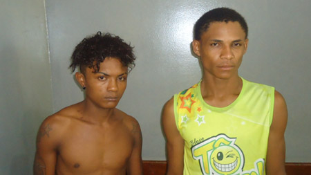 Os elementos foram identificados como sendo Erinaldo M. Suarte, vulgo "Coco", de 23 anos, e Marconiel dos Santos Galvão, vulgo "Marquinhos", de 21 anos. Ambos foram apresentados no 1º DP onde foram autuados em flagrante.