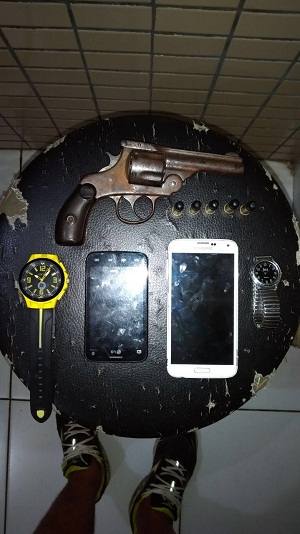 A abordagem policial aconteceu após a PM ser informada de que uma dupla havia feito vários assaltos na cidade. Os policiais militares intensificaram as rondas e na altura da Avenida Benjamin Constant, no bairro Nova Caxias, uma equipe do Esquadrão Águia deparou-se com os suspeitos. Os suspeitos teriam desobedecido a ordem de parada da PM e empreenderam fuga. Após acompanhamento tático, os militares conseguiram interceptar a dupla. Na revista pessoal foi encontrado todo o material roubado, além de uma arma de fogo calibre 38 municiada. A dupla, que segundo a PM, já tem passagens pela polícia, foi apresentada no Plantão Central de Polícia Civil. Fonte: João Lopes/NOCA |