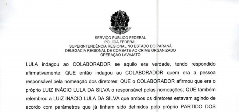Fala ainda de reunião no Planalto com Lula, quando teria sido acertado o pagamento de propina para a campanha de Dilma Rousseff em 2010, afirmações já feitas em depoimentos e negadas pelos ex-presidentes petistas.