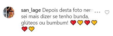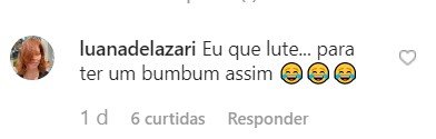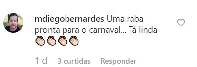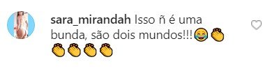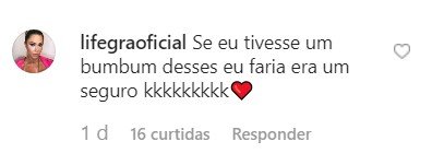 “Isso não é uma bunda, são dois mundos”, “Eita, meu sonho ter um corpo desse”, “Uma raba pronta pro Carnaval” e “Vou ali colocar meu babador” foram algumas das reações.